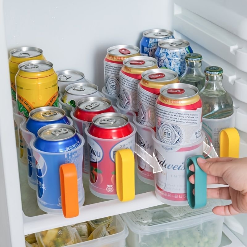 1pc Portable Can Organizer For Refrigerator Shelf Beer Can Holder Fridge Storage Sliding Rack Clear Plastic Storage Containers For Food