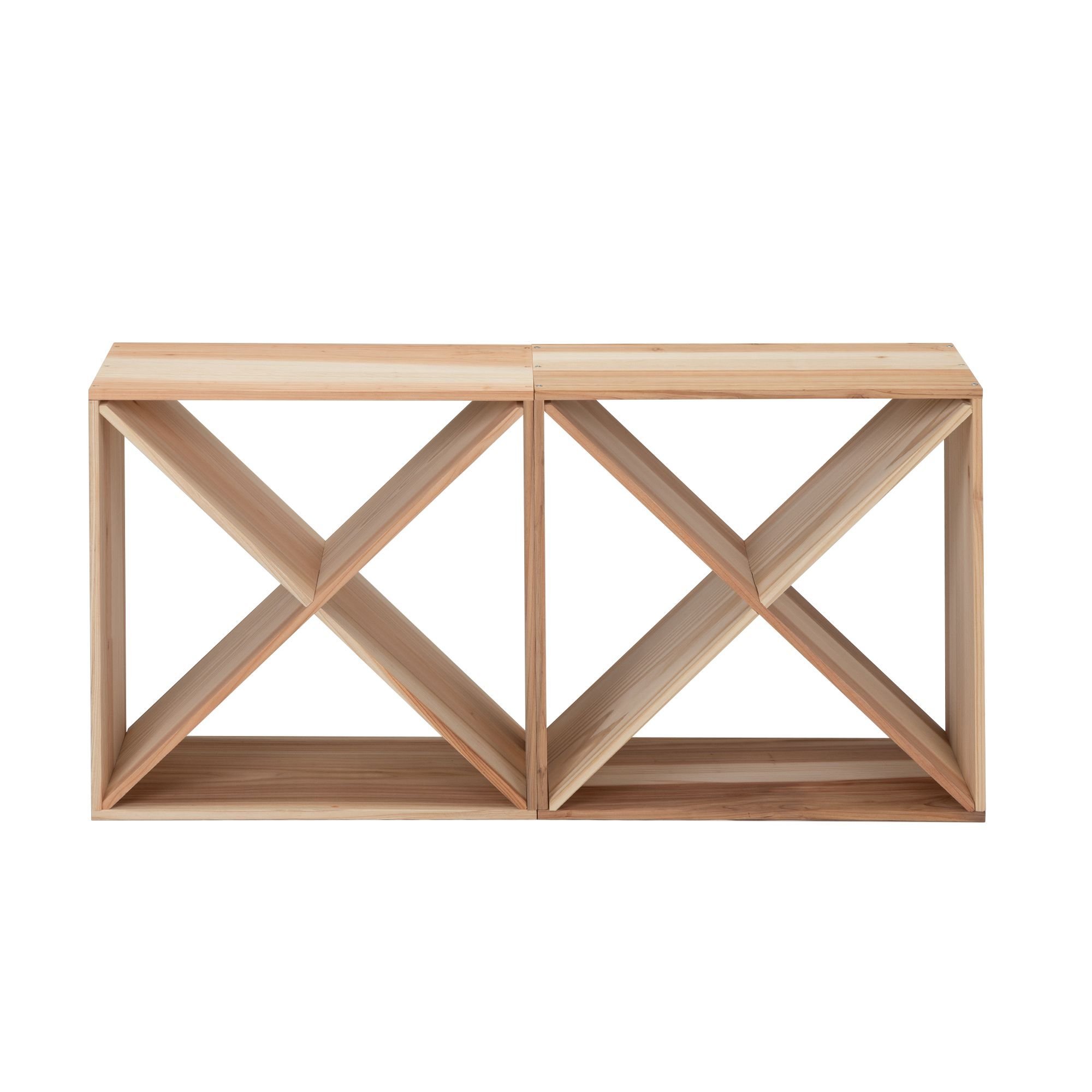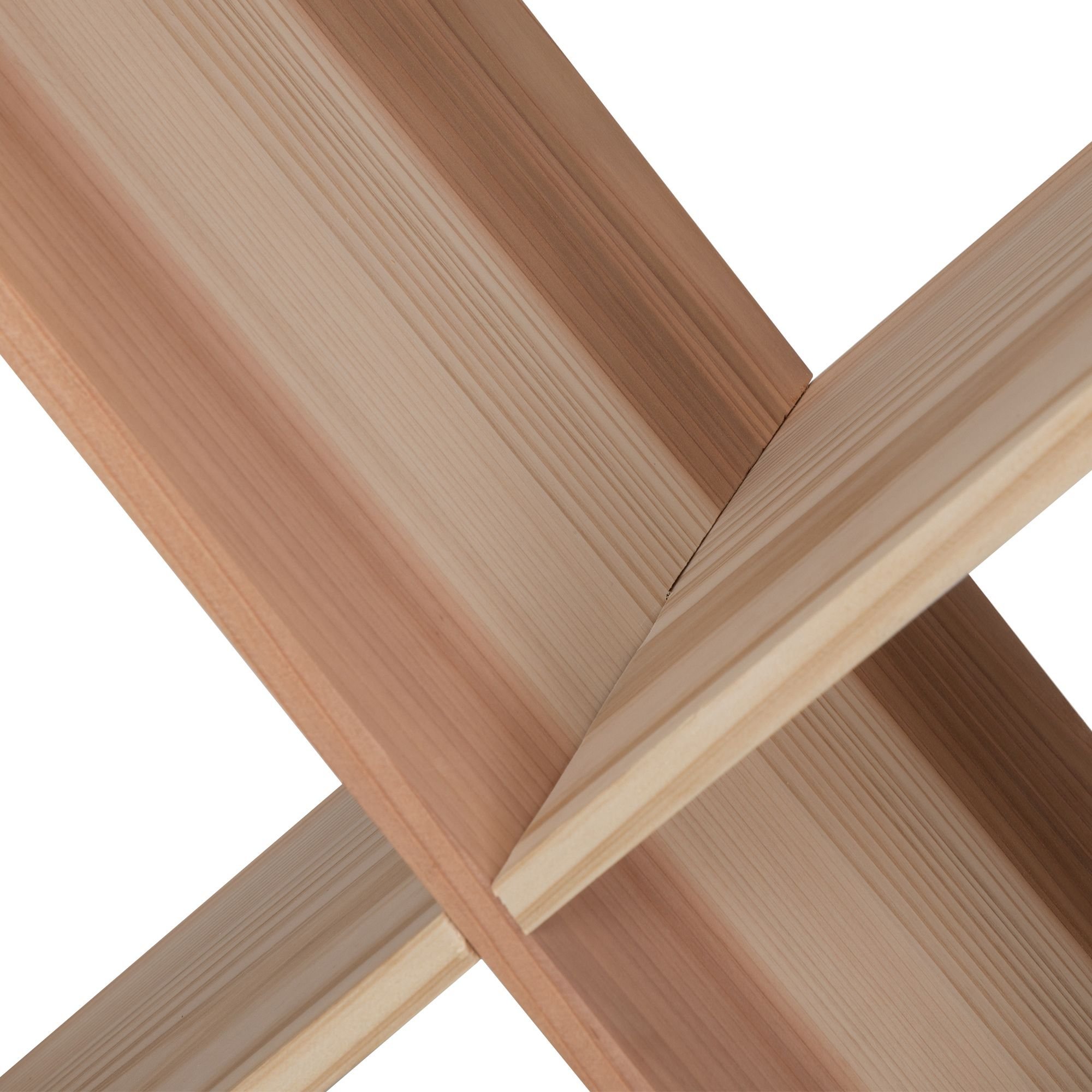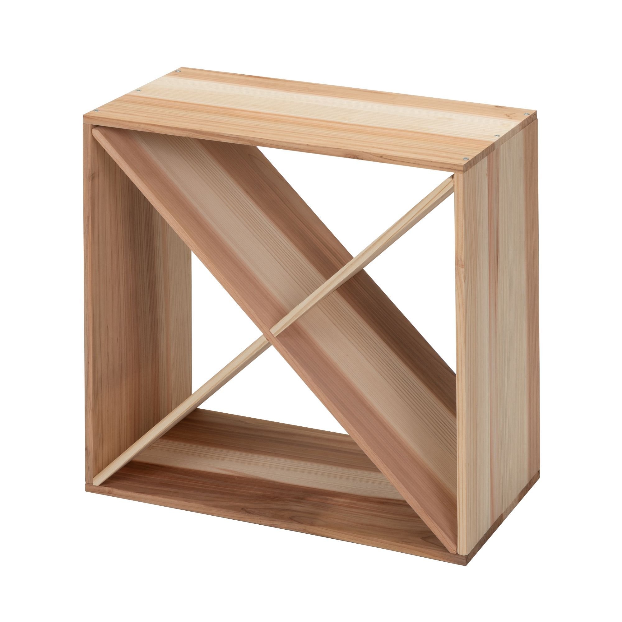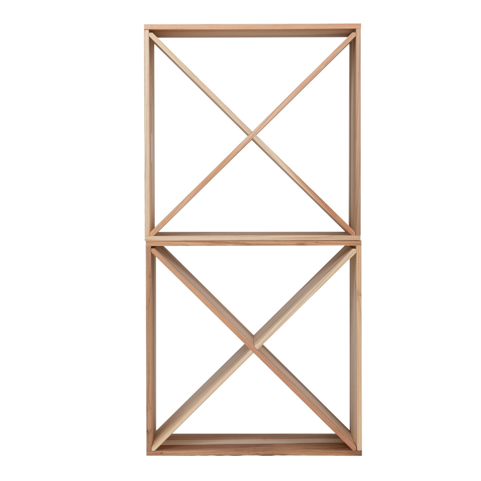 Set of 2  24 Bottle Wine Rack, Wine Storage Cube for Bar Kitchen Cellar, Wood Crate in Natural Features:[Spacious Wine Storage Cube]: This wine rack with classic modular style that holds up to 24 bottles of each cube, with each separate compartment holding up to 6. This natural shelf offers an easy way to organize your favorite wine.[Safe and Sturdy Wood Material]: Crafted from sustainable and natural fir wood with smooth hand-sanded, the strong wood crate shows less blemishes and is built to last. This wine rack can support up to 66 lbs.[Modern and Stable Cabinet]: The X-shaped divider separates the interior into 4 sections while adding the standing stability of the whole structure and making your bar, kitchen, or cellar look more modern.[Stackable for More]: Compact cube shape is great for small spaces because you can stack 2 or more units high or side by side to expand your storage capacity. Combine freely as you like.[Easy to Assemble]: According to the step-by-step manual, you can install the wine rack easily.  tags are included to record the origin, vintage, and other details. Specifications:Color: NaturalQuantity: 2Material: Fir WoodBoard Thickness: 0.47"Overall Dimensions (each): 19.69"L x 10.24"W x 19.69"HWeight Capacity: 66 lbsNet Weight: 14.55 lbsQuantity of Tags: 20 Note:1. The product comes with an English user manual