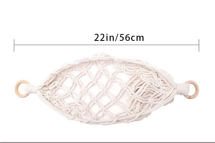 Gray produce basket made of 100% cotton. Two solid wood dowels for structural reinforcement and great kitchen decor for counter. Four hand screw in hooks allows for easy and quick installation. Endless options for hanging fruit baskets for kitchen. Adjustable hanging storage basket. Determine the depth and height of macrame fruit hammock placement that best suits your needs. The spacing of the steel cup hook screws determines how the macrame basket hangs. The shorter the distance between the wood dowels the lower hanging produce basket. Hand screw in the hooks. 100% cotton kitchen baskets for storage are easy to clean. Baskets for kitchen cupboards feature macrame knotting. Under cabinet fruit hammock includes solid wood dowels for extra strength and support for hanging vegetable baskets for kitchen. Our hanging net has larger capacity. Each banana hammock comes with two S hooks for hanging bananas, grapes, garlic nets, tomatoes on the vine. Banana holder and banana hook under cabinet great for space saving kitchen organization. Fruit basket for kitchen works great for nursery, bathrooms, rv storage.