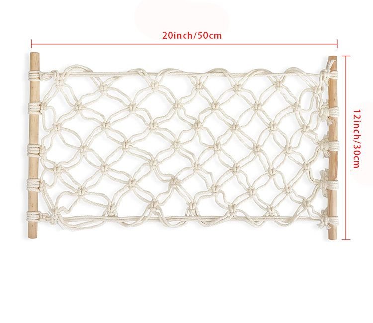 Gray produce basket made of 100% cotton. Two solid wood dowels for structural reinforcement and great kitchen decor for counter. Four hand screw in hooks allows for easy and quick installation. Endless options for hanging fruit baskets for kitchen. Adjustable hanging storage basket. Determine the depth and height of macrame fruit hammock placement that best suits your needs. The spacing of the steel cup hook screws determines how the macrame basket hangs. The shorter the distance between the wood dowels the lower hanging produce basket. Hand screw in the hooks. 100% cotton kitchen baskets for storage are easy to clean. Baskets for kitchen cupboards feature macrame knotting. Under cabinet fruit hammock includes solid wood dowels for extra strength and support for hanging vegetable baskets for kitchen. Our hanging net has larger capacity. Each banana hammock comes with two S hooks for hanging bananas, grapes, garlic nets, tomatoes on the vine. Banana holder and banana hook under cabinet great for space saving kitchen organization. Fruit basket for kitchen works great for nursery, bathrooms, rv storage.