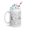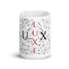 Introducing the 'Luxe' White Glossy coffee Mugs, an elegant and modern piece exclusively designed by HadiArts. This mug features a sophisticated geometric pattern intertwined with the bold 'LUXE' text, making it a stylish addition to your daily coffee or tea ritual. Crafted from sturdy ceramic, this mug is designed to withstand both the microwave and dishwasher, ensuring its vivid print remains intact.