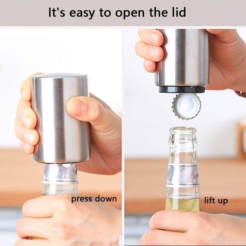 Home > Premium Beer Bottle Opener ; Stainless Steel Automatic Push Down Bottle Openers; No Damage Quick To Open Bottle Cap; Small Portable Bottle Cap Openers