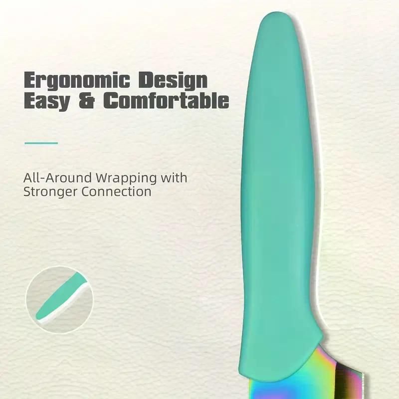 14 Pieces Fancy Rainbow Titanium Coating Kitchen Knife Set