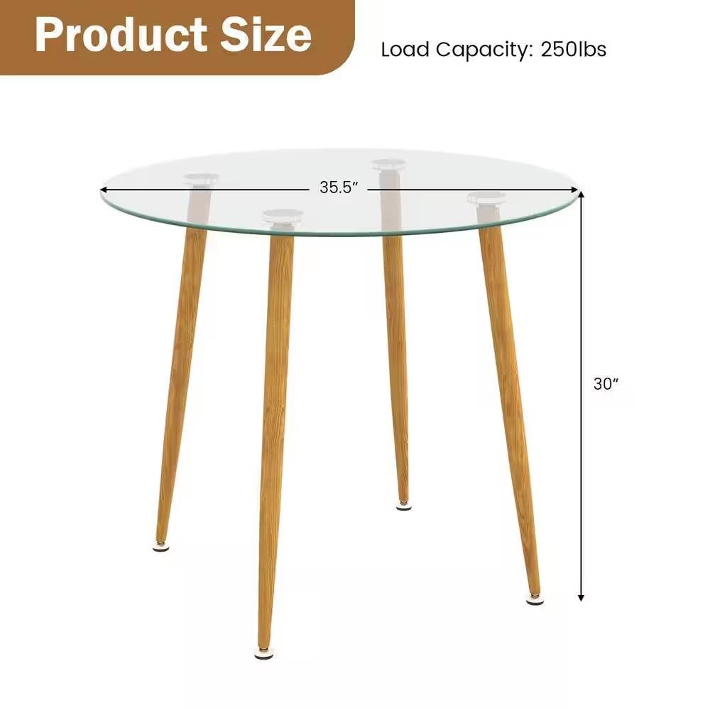 Modern 35.5-inch Round Glass Top Dining Table with Wood-Look Metal Legs Modern 35.5-inch Round Glass Top Dining Table with Wood-Look Metal Legs Modern 35.5-inch Round Glass Top Dining Table with Wood-Look Metal Legs Modern 35.5-inch Round Glass Top Dining Table with Wood-Look Metal Legs