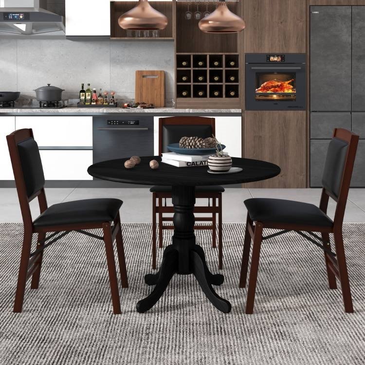 Black Solid Wood 40-inch Round Kitchen Dining Table - Rustic Farmhouse