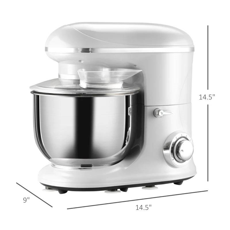 This Silver Stainless Steel Tilt 600W Electric Mixer 6QT is designed with a high-performance 600W pure copper motor and multiple speed choice to more effectively knead dough and beat eggs, this food mixer provides versatility for frosting, creamy dressings, dough, and baked goods. This standing mixer has a 6-level speed ranging from low to high, providing options to knead gently and thoroughly mix,. Press the 'P' button to mix at the fastest speed in a short time. This stand mixer's 6qt mixing bowl lets you make two dozen cookies or four loaves of bread in a single batch. It also includes a dough hook, beater, and whisk to expand your culinary options. The tilt-head design allows less mess when changing out accessories. The suction cups under the bottom provide excellent stability. NOTE: Don't forget to put the bowl cover on top before turning it on.