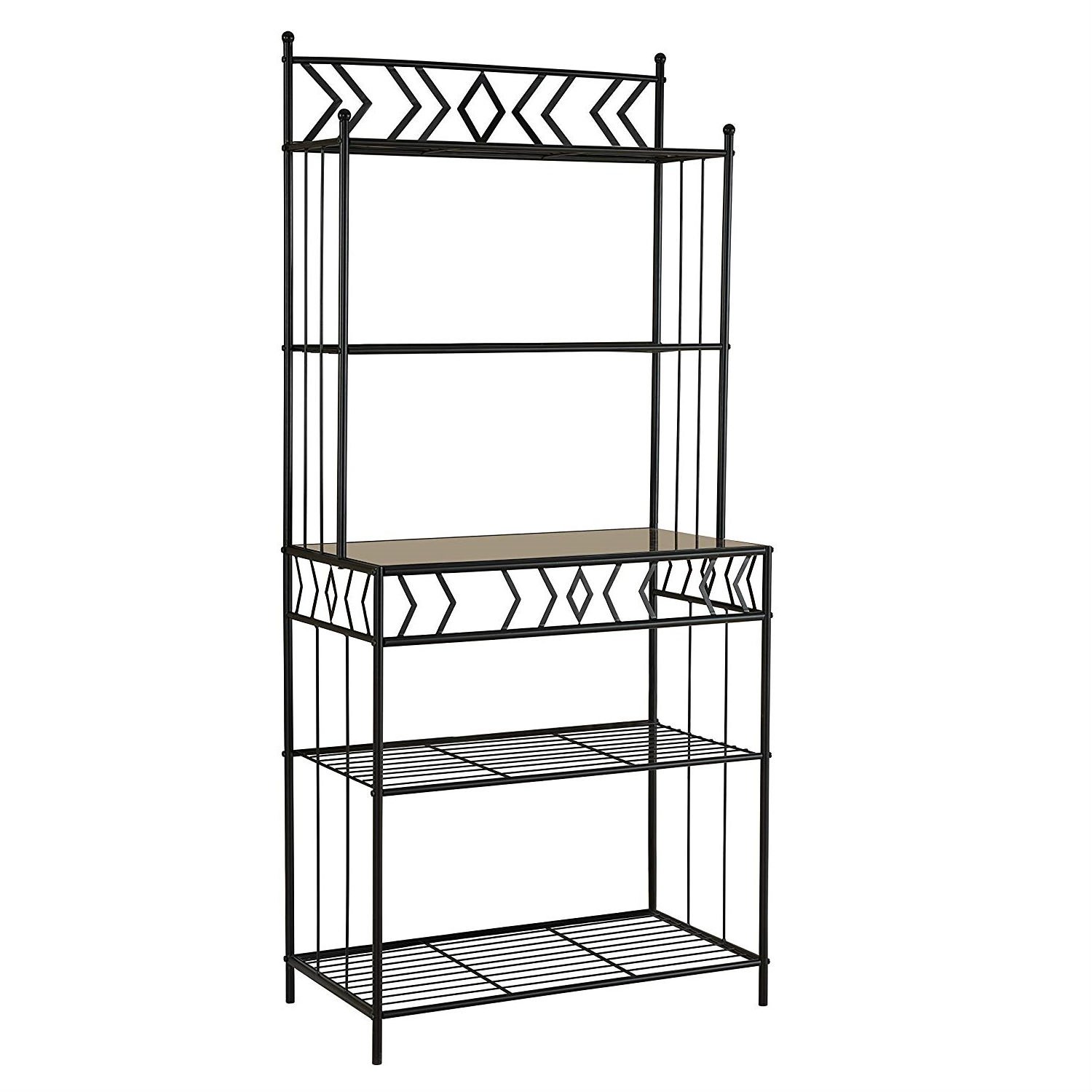 • Kitchen Bakers Rack in Black Metal with Mabel Finish Top