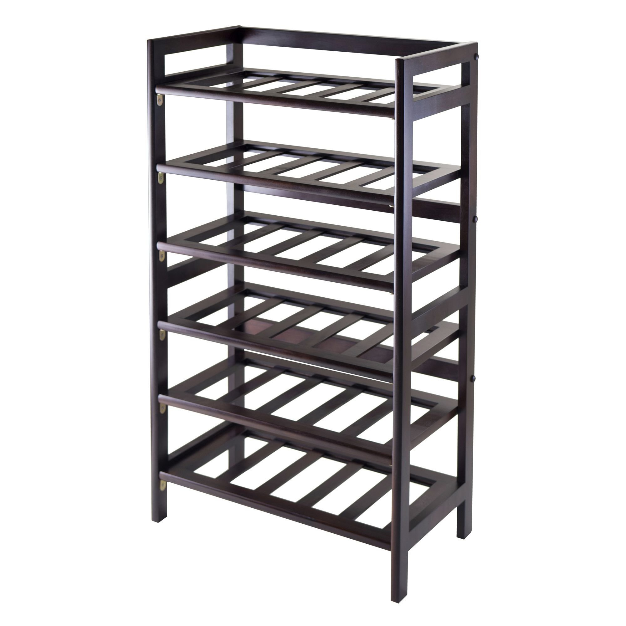 Silvi Wine Rack can hold up to 30 bottles of wine on its 6-Tier shelf in warm Antique Walnut finish. Each Shelf holds up to 5 bottles. Overall size is 21.50"W x 11.54"D x 38.50"H. Made from combination of solid and composite wood. Assembly RequiredWine Rack has 6 Tiers/shelf and each shelf holds up to 5 bottles.Overall assembled size is 21.50"W x 11.54"D x 38.50"H.Made from combination of solid and composite wood in walnut finish. Assembly Requirednullnullnull This product meets the oversized requirement per UPS/FedEx. The shipping weight reflected is the dimensional weight. This product also meets the large package requirement per UPS/FedEx. The estimated shipping cost will include this fee. Large package is $70.00; applied when length plus girth [(2 x width) + (2 x height)] combined exceeds 130 inches. Additional Handling charge of $10.50 applied where a package's longest side exceeds 48 inches in length; the second longest side exceeds 30 inches in length; or total weight is greater than 70 lbs.This product meets the oversized requirement per UPS/FedEx. The shipping weight reflected is the dimensional weight. This product also meets the large package requirement per UPS/FedEx. The estimated shipping cost will include this fee. Large package is $70.00; applied when length plus girth [(2 x width) + (2 x height)] combined exceeds 130 inches. Additional Handling charge of $10.50 applied where a package's longest side exceeds 48 inches in length; the second longest side exceeds 30 inches in length; or total weight is greater than 70 lbs.