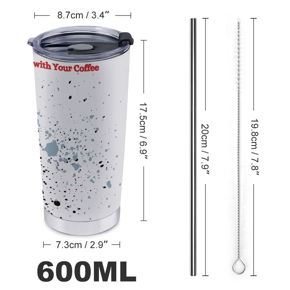 Highlight the eco-friendliness of the stainless steel material.Emphasize the mug’s insulation capabilities to keep drinks hot or cold for extended periods.Mention the spill-proof lid for convenience on the go.Offer a variety of color options for the abstract design.