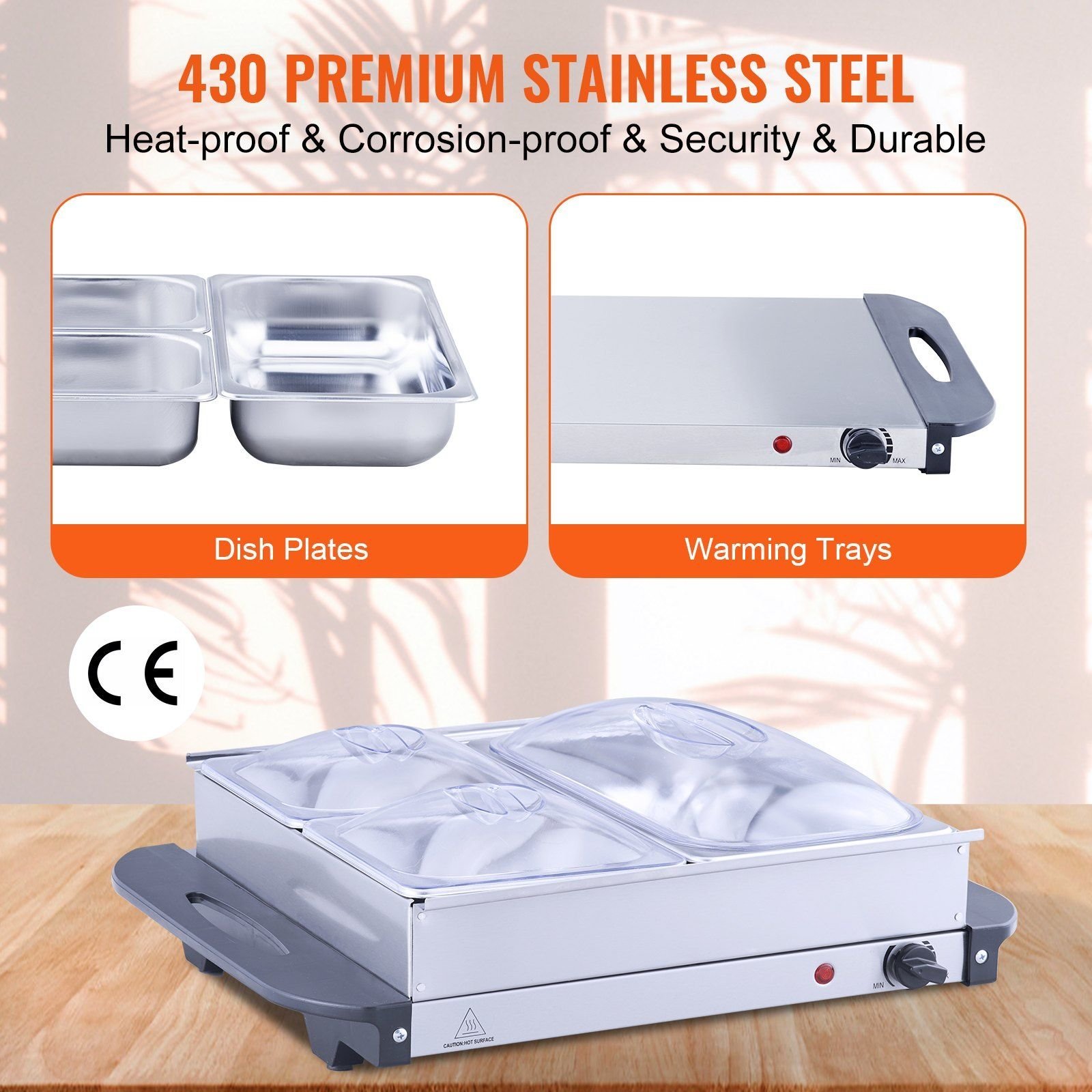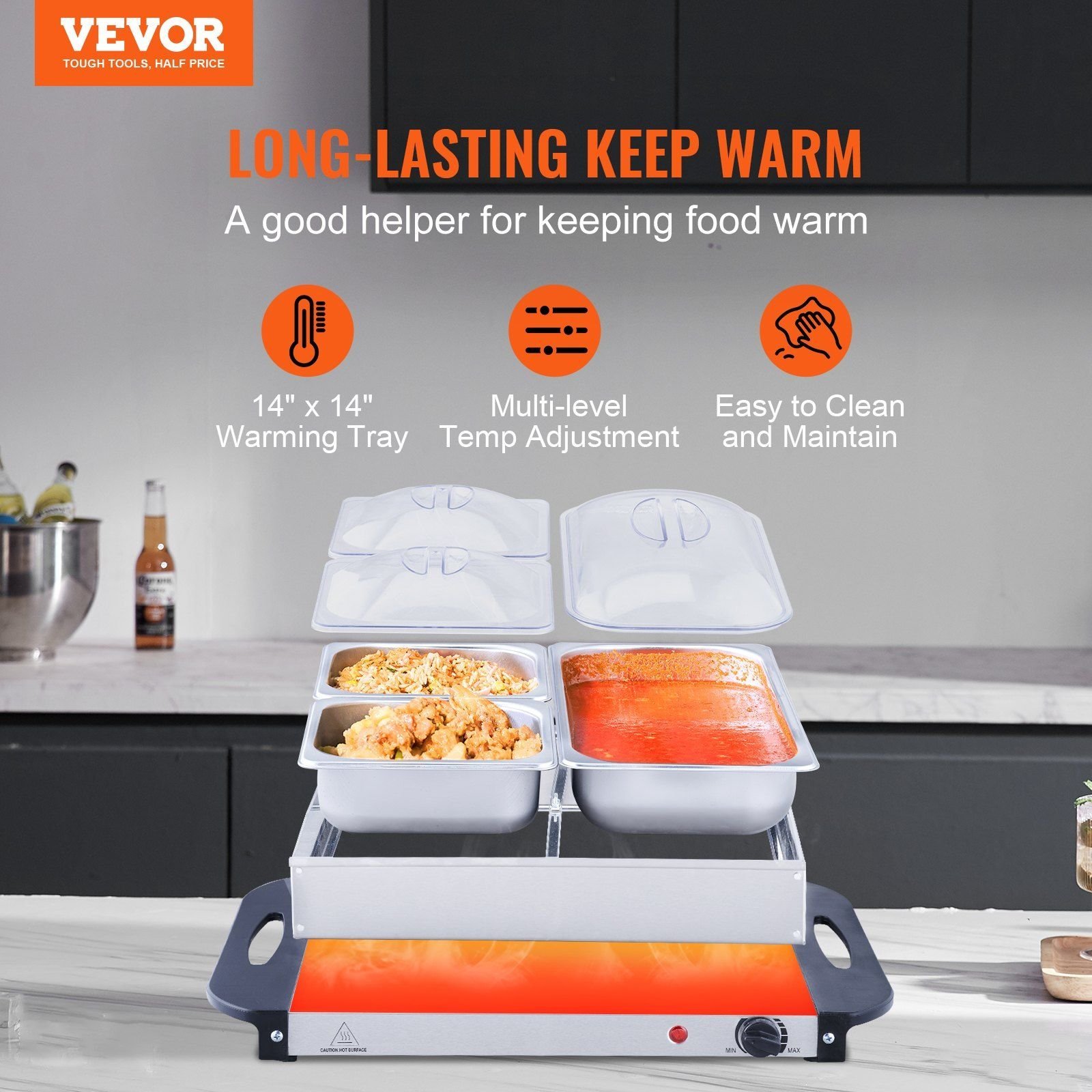 VEVOR's heating tray can heat the food within 15 minutes. The stainless steel material is not only heat-resistant, but also stable. It has a removable dinner plate for storing food or directly heating the dishes. Not only can be used in daily dining, but also a good partner for parties.