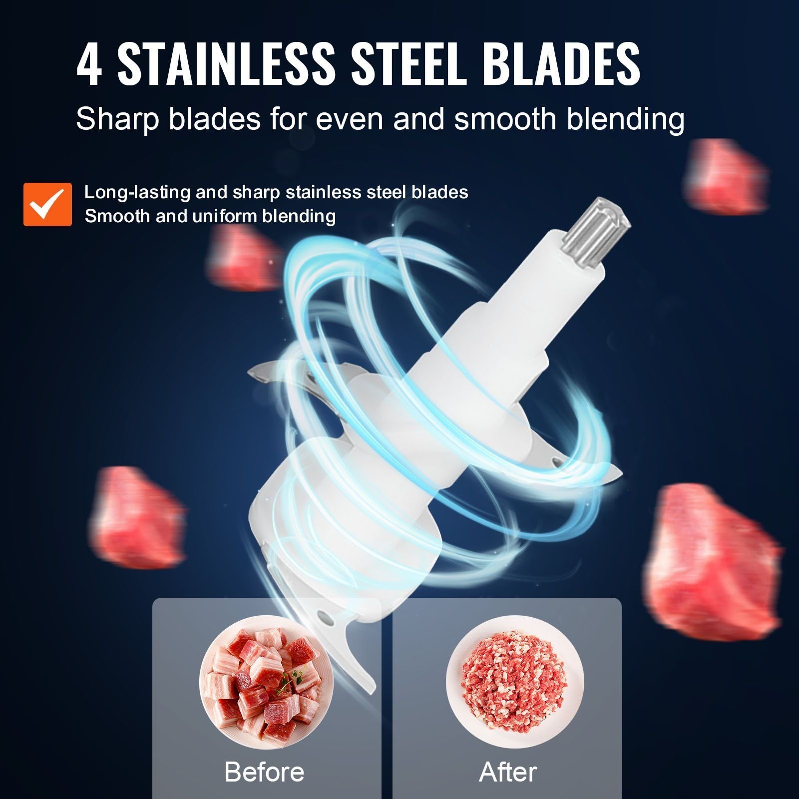 Home > VEVOR Food Processor, Electric Meat Grinder with 4-Wing Stainless Steel Blades, 2.5 Cup Glass Bowl, 400W Electric Food Chopper